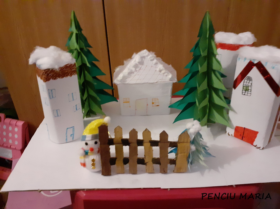 Elevii clasei 1 C au avut de realizat în luna decembrie, în cadrul orelor de AVAP, o machetă a Satului de Crăciun.